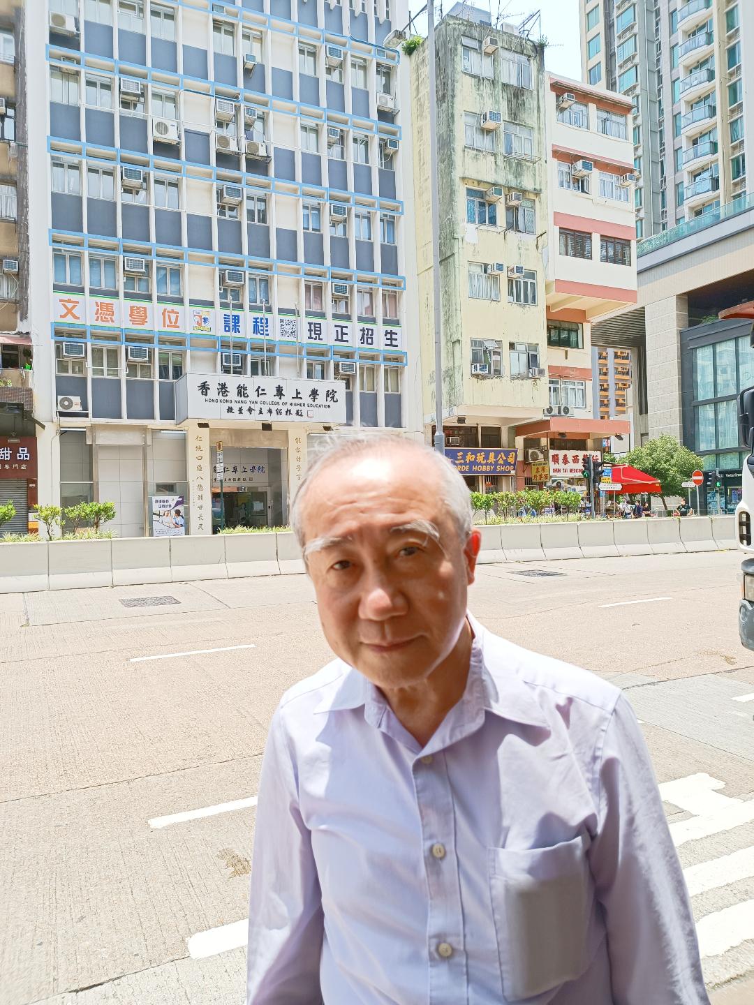 [黃坤堯,身後是其任教的香港能仁專上學院]