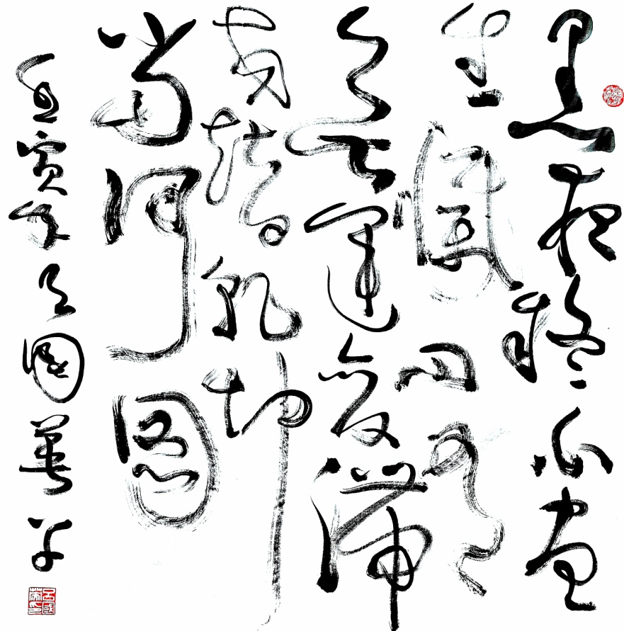 由形而下观,这问题均与书写之技法、字法、墨法、章法等直接相关系。那么,是否从这里入手就可解决书象之节律问题了呢?显然不是。我们再由形而上观,这些问题虽“衍生”于书写之结体、墨法等诸方面,但究其根本在于书者书象之速度、力度、向度与化度,并在这“四度”的综合作用下,方能实现书象创作的节律美。