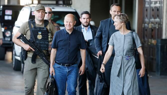 到訪烏克蘭的四國領導人在同烏克蘭總統澤連斯基舉行會晤時,德國總理肖爾茨邀請澤連斯基參加6月22日至28日在德國巴伐利亞州埃爾毛宮(Schloss Elmau)舉行的七國峰會。澤倫斯基接受了肖爾茨的邀請。烏克蘭總統澤連斯基則呼籲他們提供更多武器,並對俄羅斯施加更嚴厲的制裁。法國總統馬克龍離開基輔時表示:“我們的職責是站在國際價值一邊,因此也站在烏克蘭一邊。 我們必須堅持並幫助烏克蘭在一場持久的戰爭中挺下去。”
