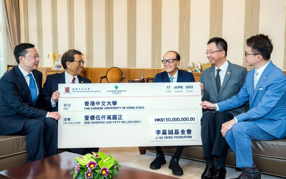 香港中文大學(中大)獲李嘉誠基金會慷慨捐贈港幣一億五千萬元,連同等額配對,將為中大醫學院成立一項價值港幣三億元的基金,用於支持生物醫學科技的科研發展。