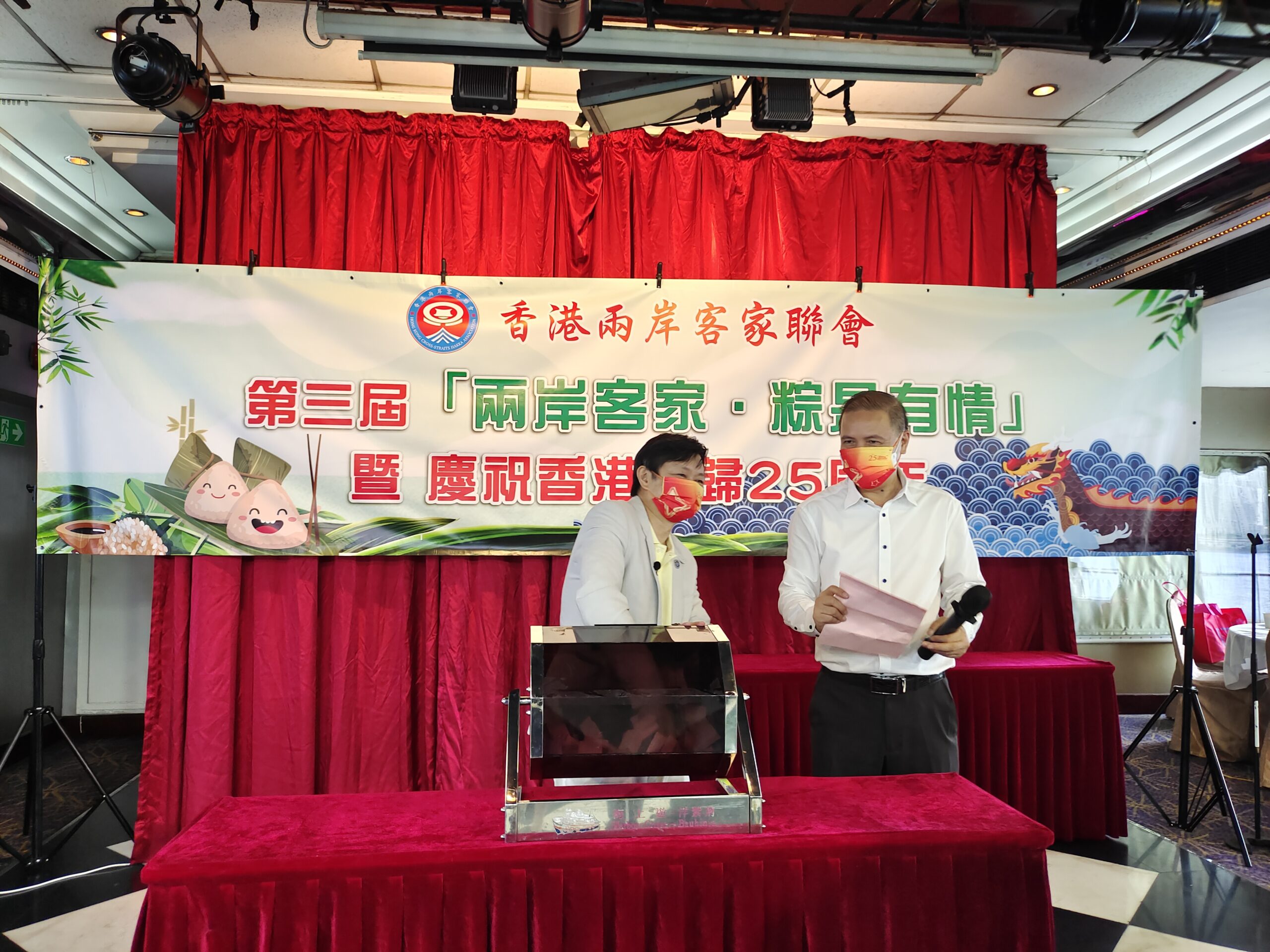 (中華新聞通訊社/中華時報香港訊)由香港兩岸客家聯會主辦的第三屆“兩岸客家·粽是有情” 暨慶祝香港回歸祖國25周年活動26日在香港洋紫荊號觀光船上舉行。