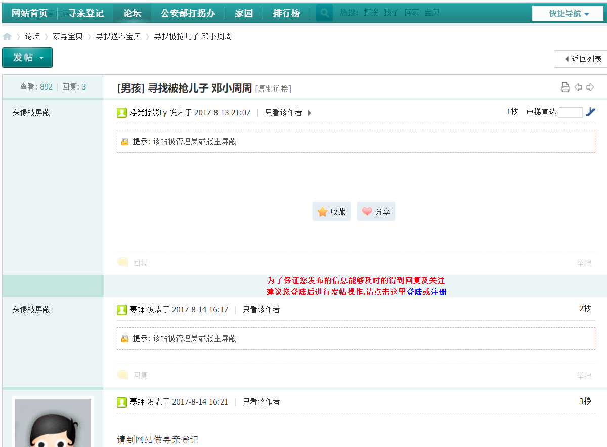 中國媒體《南方週末》記者在“寶貝回家”網站發現一份在2017年登記尋找孩子“鄧小週週”的帖子,其中提到 “失蹤”地點在廣西壯族自治區桂林市全州縣的橋頭旅店二樓,夫婦二人描述“鄧小週週”的身體特徵,指他“1990年被搶時1歲,剛會走路和說話。家窮無相片,唯一胎記是左腳腳踝有顆紅痣。被抱走時穿的花衣服和自己做的布鞋。他的爸爸媽媽是鄧振生和唐月英”。不過本臺記者查閱網站時,卻發現這篇帖子已被管理員屏蔽。