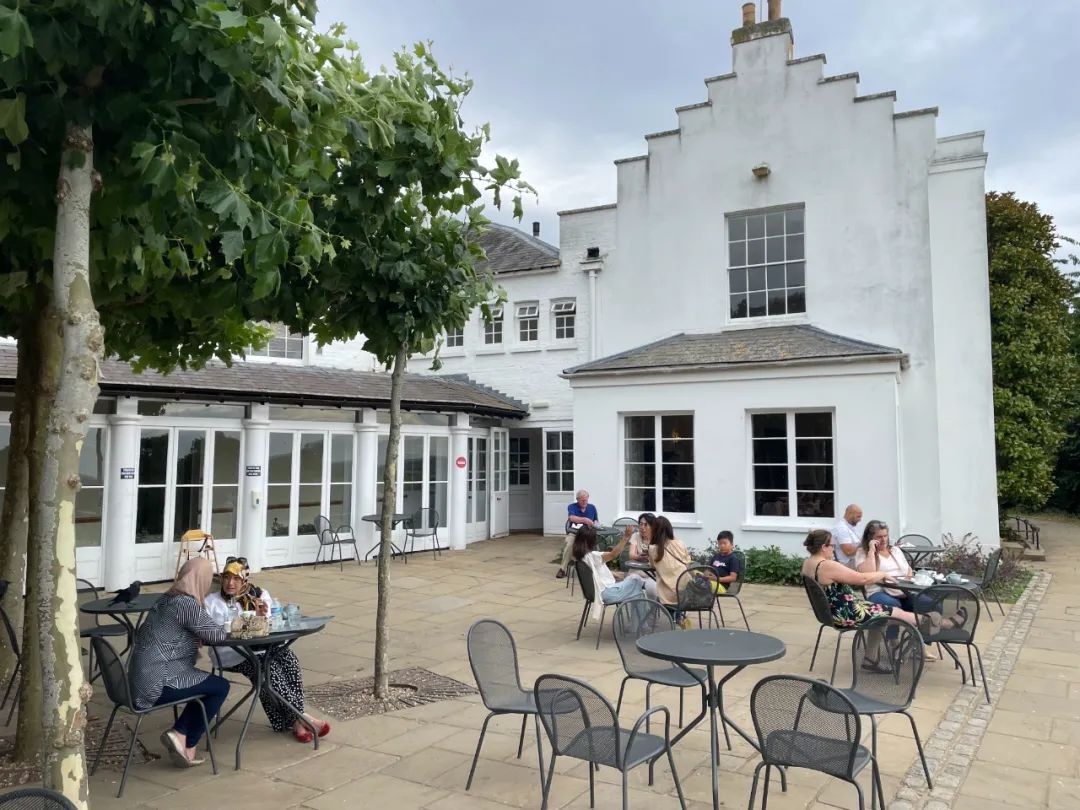 选择户外坐下,呼吸着天然氧吧,欣赏着自然景色。远处还是泰晤士河上游的转弯处,河中游艇荡漾,舢板划过,两岸密林深处是故居,好一处悠闲地。