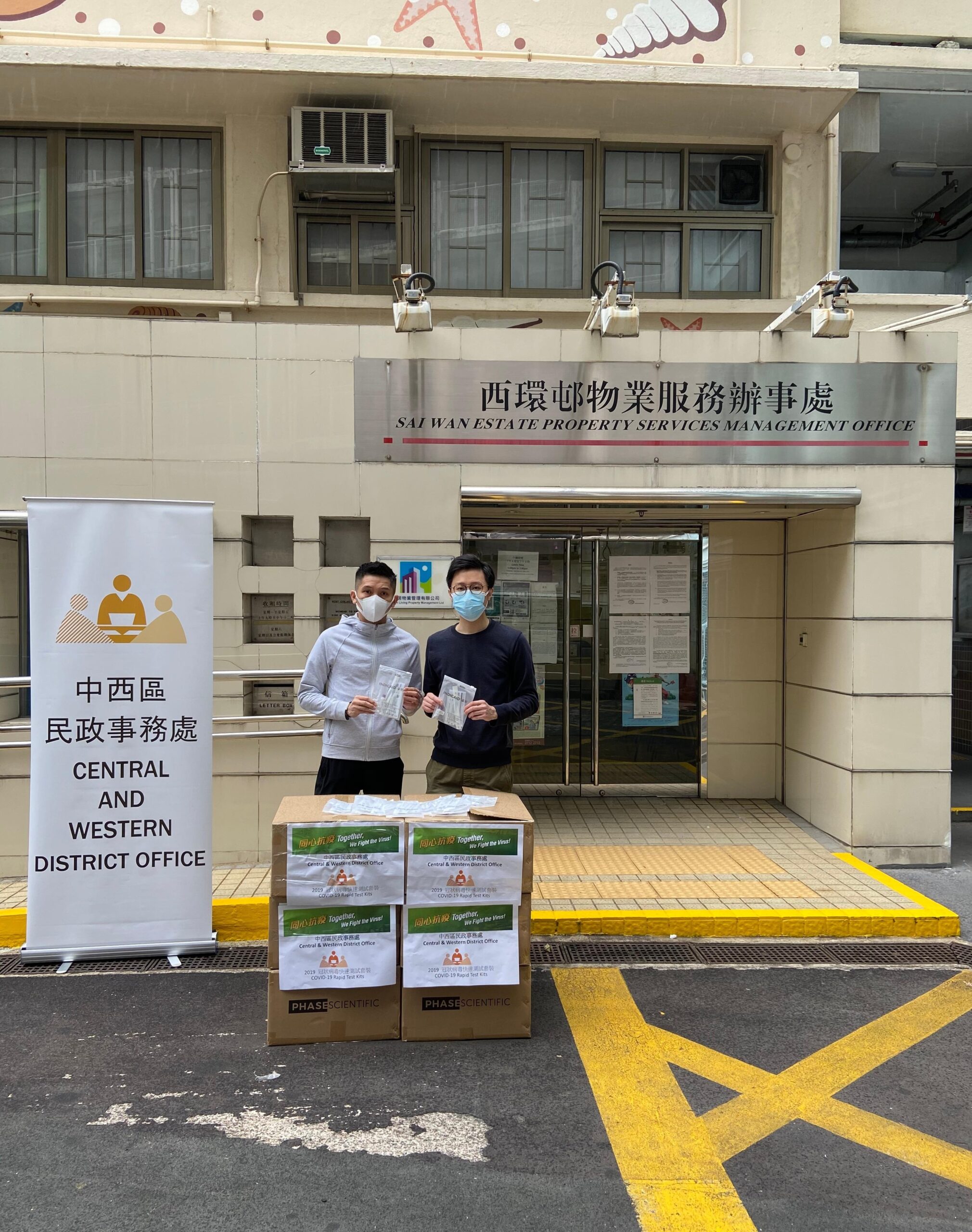 民政事務總署向中西區、觀塘、西貢、荃灣、葵青和黃大仙住戶及清潔和物管員工免費派發2019冠狀病毒病快速測試套裝