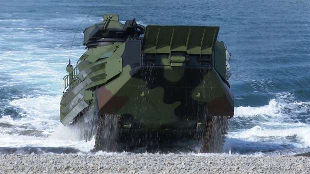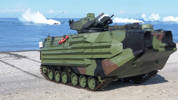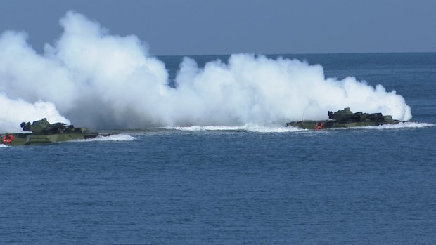 臺灣漢光演習28日清晨在屏東加祿堂海灘進行聯合海空軍兩棲登陸作戰操演,扮演攻擊方的登陸部隊,出動21艘AAV-7兩棲突擊車,在海空掩護下分4舟波次登陸搶攤。登陸之前,由突擊艇作前鋒部隊開闢登陸點,排除水雷清除障礙物,炸出高達數公尺的火花,以開拓安全航道。空軍出動紅雀無人機升空偵察,另以IDF戰機施放熱焰彈,實施海灘制壓。實彈操演,炮聲連連,場面逼真。
