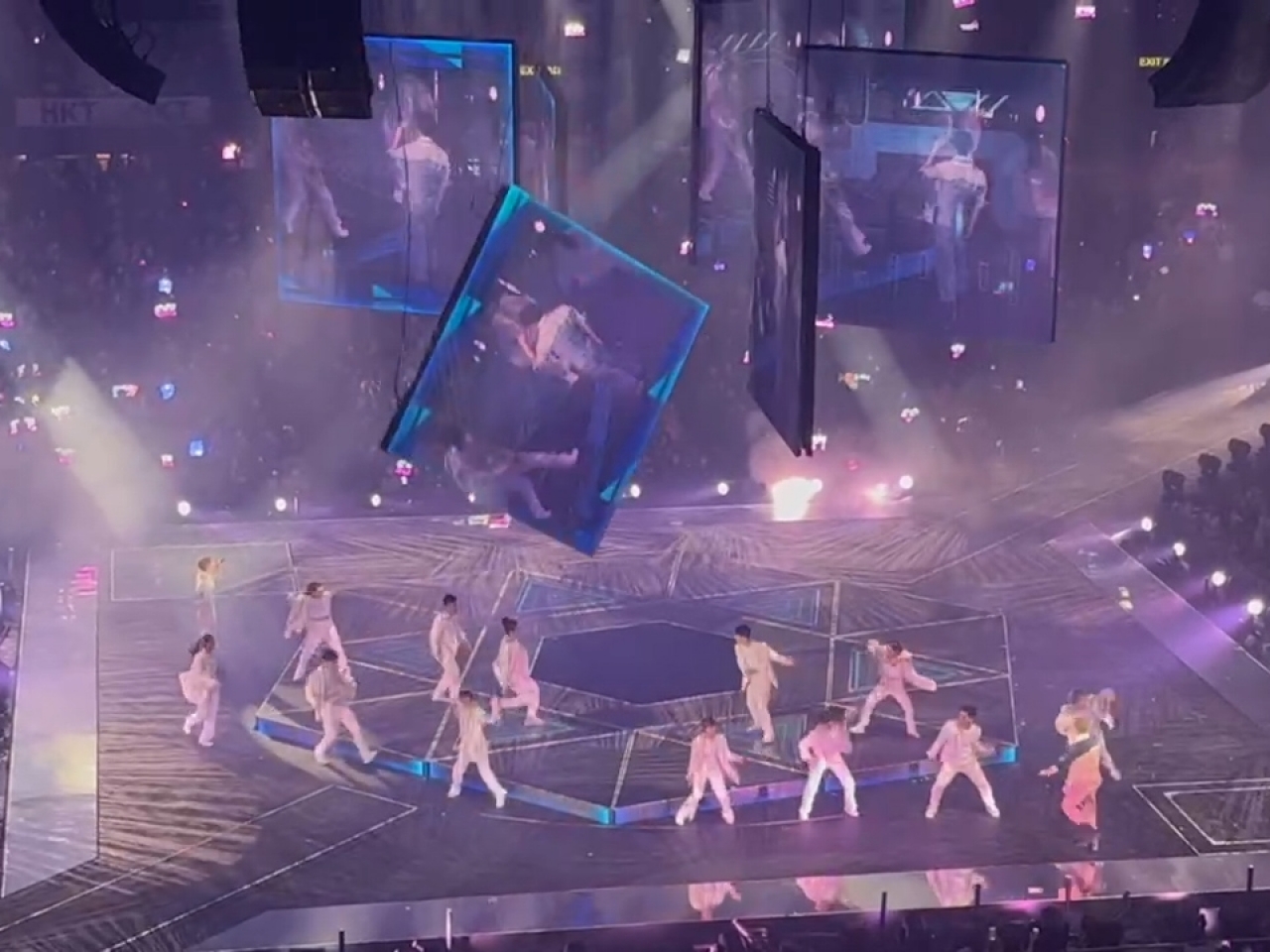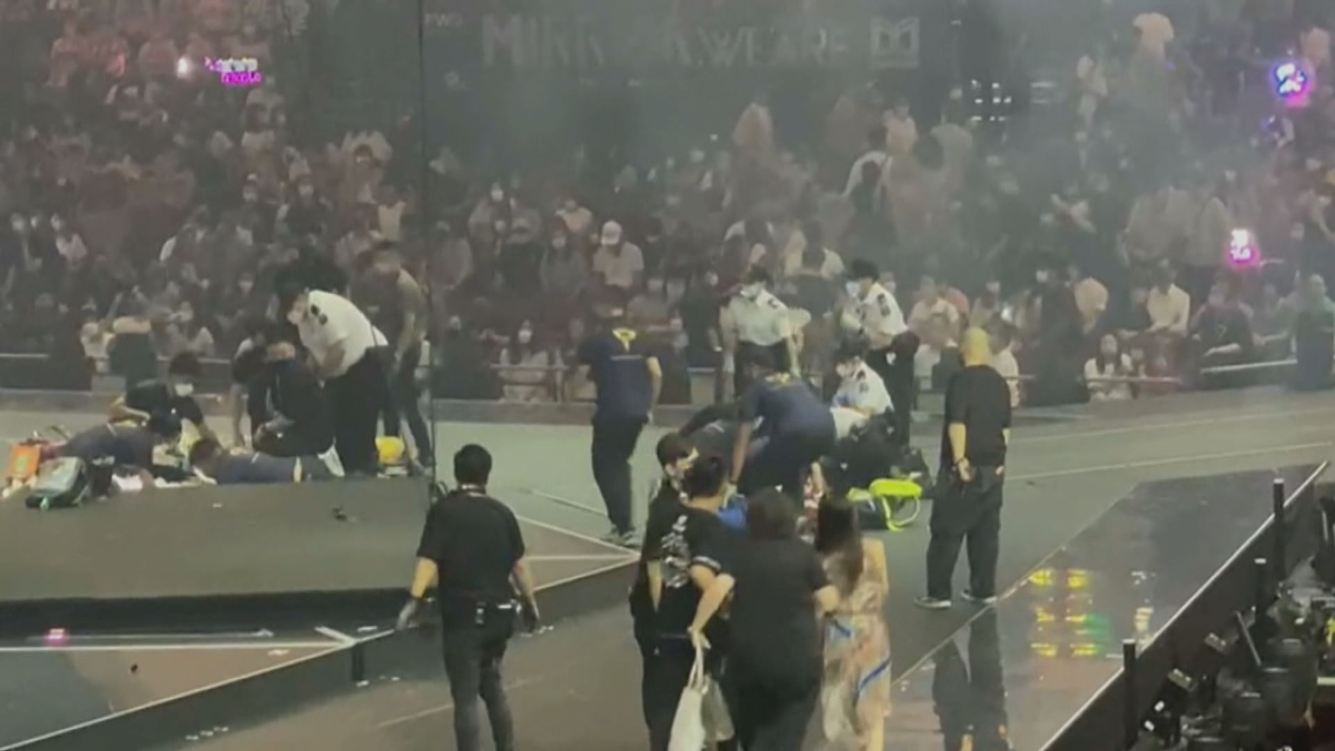 事發在晚上10時許,根據網上片段可見,MIRROR成員呂爵安、盧瀚霆與多名舞蹈員在台上跳唱,一塊懸在半空的大屏幕突然垂直跌下,一名舞蹈員被擊中頭部倒地,大屏幕其後再壓住另一名舞蹈員,救護員其後到場,將兩名傷者送伊利沙伯醫院治理。