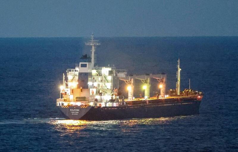 *懸掛獅子山共和國旗幟的運穀船「拉佐尼號」(Razoni),1日上午從烏克蘭敖德薩出發,船上載運約2萬6000噸玉米。「拉佐尼號」2日已順利抵達土耳其。