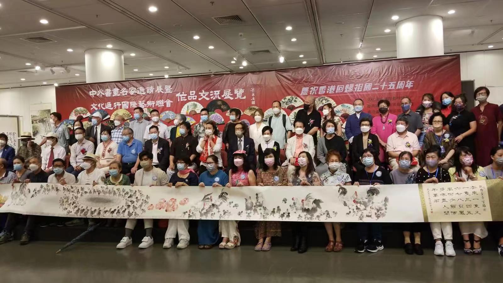 (中華新聞通訊社/中華時報香港8月10日訊)2022年8月9日,狂風暴雨襲擊香港,疫情氣氛嚴重,在香港中央圖書展覽館里,中外藝術名家歡聚一堂,以藝術熱情溫暖八百萬香港人抗疫,促發展信心。
