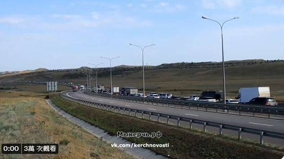 推特帳號「@lilygrutcher」在推特PO出一段影片,可以看到影片中有一邊的車道塞滿了汽車,車陣綿延了好幾公里,而它的對向車道則是幾乎無車,該帳號在推文中表示「克里米亞持續塞車中。」