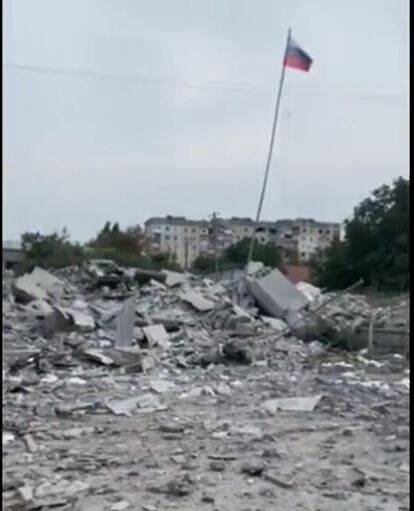 推特帳號「@ZMiST_Ua」在推特PO出一段影片,可以看到影片中的建築物幾乎被夷為平地,鋼筋混泥土與管線散落在各處,旁邊還有懸掛著俄羅斯國旗的旗桿,其他俄軍正在殘骸中走動查看情況。