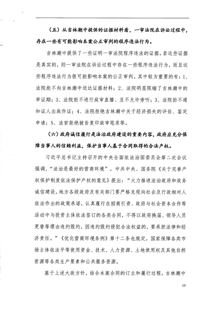 (五)从吉林潮中提供的证据材料看,一审法院在诉讼过程中,存在一些有可能影响本案公正审判的程序违法行为。