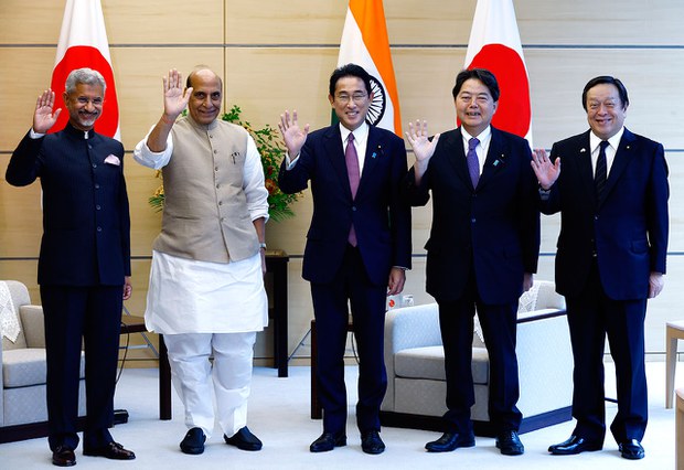 日本与印度8日在东京举行外交与国防部长级会议“2加2会谈”,因应中国扩张海权,日印反对以武力片面改变现状,表示将加强海洋安保合作,扩充联合演训。日方预计5年内加强国防,研议拥有“反击能力”,两国也将针对国防装备,在陆上无人车辆、机器人工等领域,进行共同研究。另外,还会就日本航空自卫队与印度空军将首度举行战斗机联合演训一事进行协商。