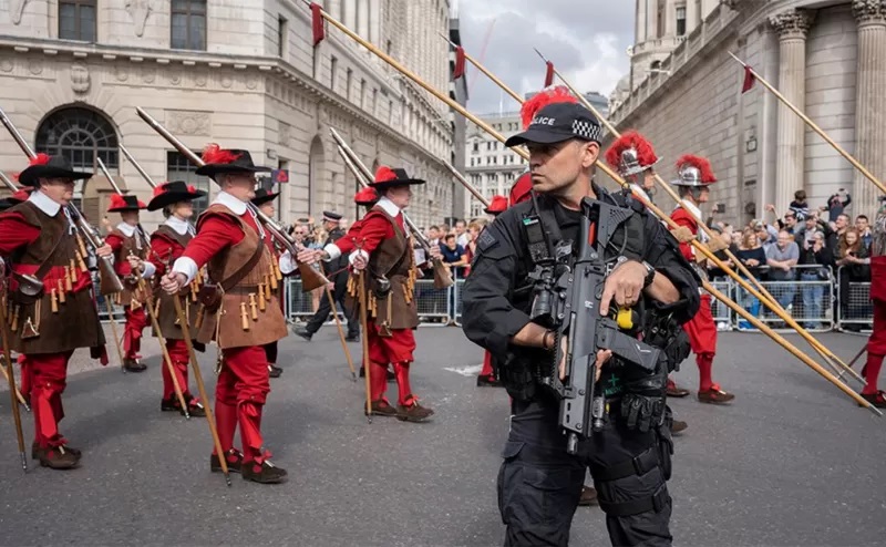 在這種被稱為「互助」的安排中,都會警察從倫敦以外地區借調了成百上千的警察——有的警察來自遠至蘇格蘭和北愛爾蘭這些地區。這是為女王葬禮做全國動員的一項長期安排中的內容,抽調人員裏面有在不同領域裏的專業警官。例如從西約克郡和蘭開夏郡來的尋找爆炸物的警犬團隊,他們本周一直在白金漢宮前面的林蔭路(the Mall)巡邏。