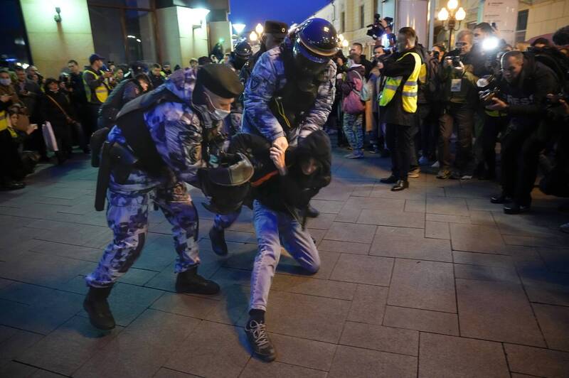 雖然上街的民眾強調表達祈求和平的訴求,反對戰爭及動員令,但當局也隨即派出警察進行鎮壓,民眾直呼「他們為什麼要替我決定我的未來?」,也有人對警察喊話「你為什麼要為執政20年的普廷服務」,在莫斯科的法新社記者指出,至少有50人在主要的鬧區街道遭穿著防暴裝備的警察拘捕。獨立觀察組織OVD-Info則指出,至少有1332人在俄羅斯的38個不同城市被拘捕。