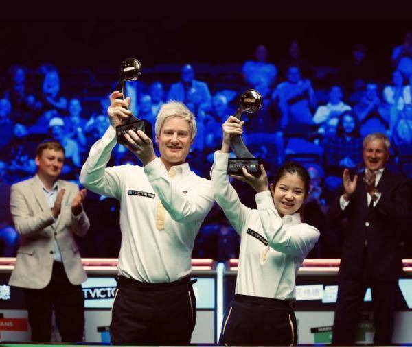 罗伯逊和努查鲁特夺得斯诺克混双邀请赛冠军。组委会供图