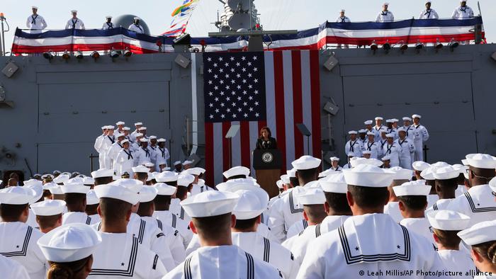 哈里斯是在參訪日本首都東京附近橫須賀美國軍事基地期間,在美國海軍霍華德號驅逐艦甲板上向海軍官兵講話時作上述表示的。