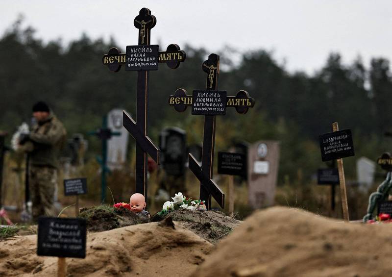 烏克蘭當局一再指責俄羅斯軍隊在烏克蘭被佔領的城鎮犯下暴行,但俄羅斯否認這些指控。烏克蘭於9月收復伊久姆(Izium)東北部城鎮後,從墓地挖掘出436人的屍體,當地官員表示,大多數人疑似是暴力致死。