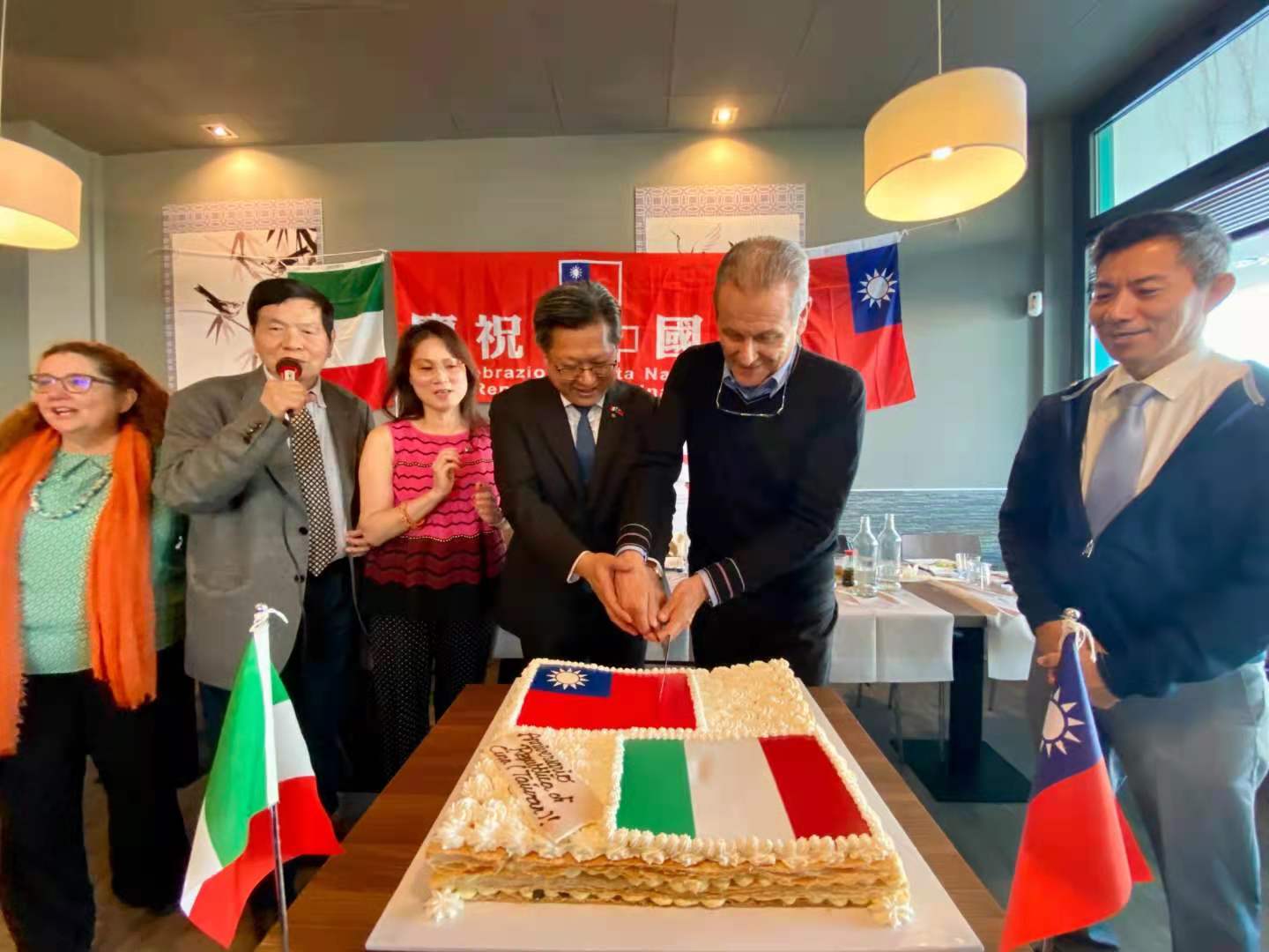 慶祝餐會林副代表(代表李大使)也在場應大家要求下,助興高歌義大利名謠”Oh Sole mio” (我的太陽)Torna a Surriento ! (歸來吧,蘇連多!)獲如雷般掌聲!劉會長也唱了許茹雲的「如果雲知道」把慶祝活動的氣氛嗨到極點!