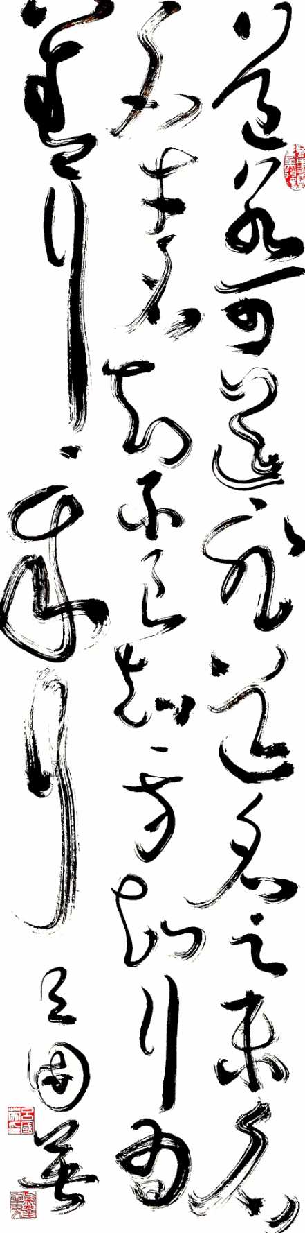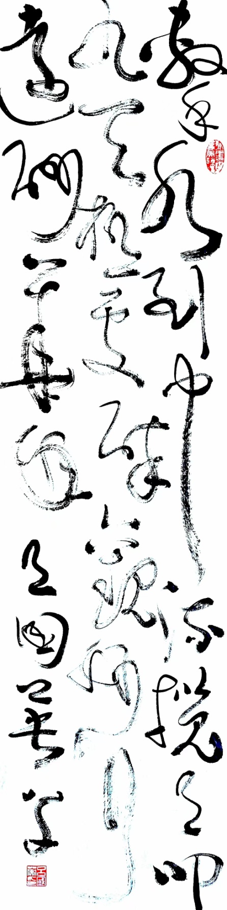 (釋文:擊水到中流/攬月叩九天/極處醉觀妙/行遠酬華年)