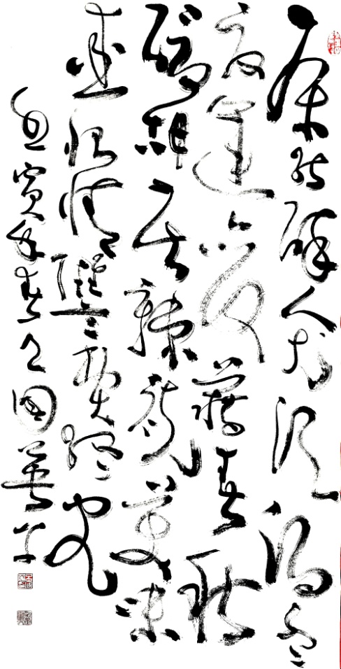 尤其令我感到不可思議的是,國英兄于追學求問、撰論修真中,還修養成為審美高格、獨有認知、自成一體的狂草書家。他崇尚文墨一體、藝術原創,書寫內容皆自撰詩句。幾乎於狂草創作同時起,開始哲慧詩歌創作。於奇思妙想、捉靈捕慧中,寫出了上千首膾炙人口的哲理小詩,其哲思、靈慧、高遠、渾厚、美潤、遐想、感懷的審美境界,令人醍醐灌頂、精神昇華。這些詩歌均為古體今用、舊章新篇、時代語句,多以五言哲思醞句、追疑問窮,又有三言、四言、六言、七言美潤成章、高維化境。