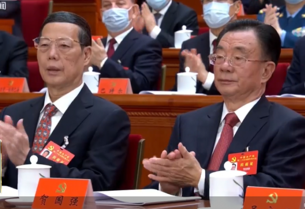 上午在北京人民大会堂开幕,张高丽(左)等卸任政治局常委与会。张高丽是十八届政治常委,他左侧的是十七届政治常委贺国强。-e1665896493166.png)