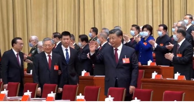 开幕,高龄96岁的中共前总书记江泽民没有出席大会。前总书记胡锦涛的座位被安排在习近平的左侧。.jpg)