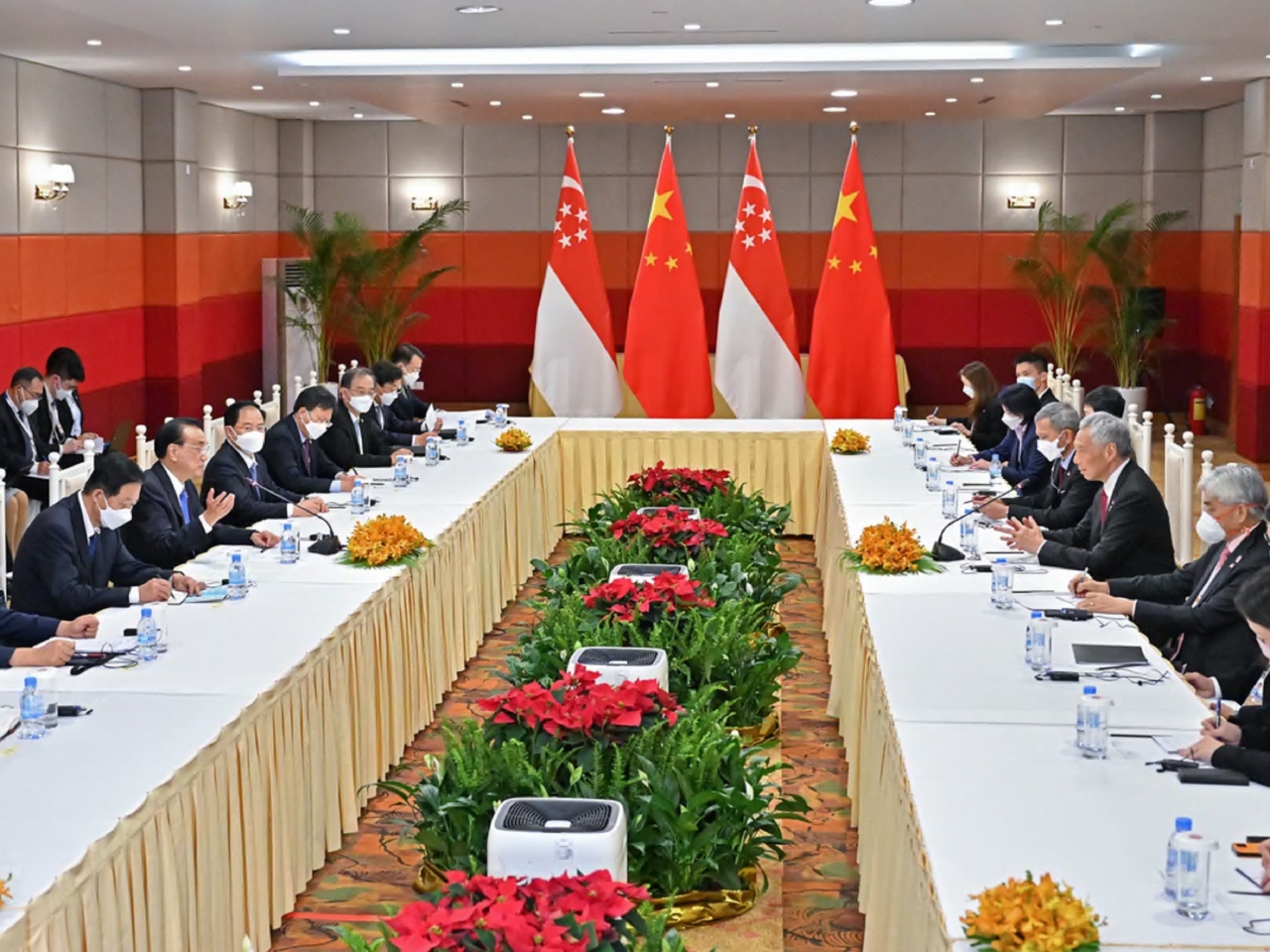 李克強表示,新加坡是中國重要的外資來源國,雙邊貿易額有望實現新突破,希望雙方早日達成自貿協定升級後續談判,共同落實好國際陸海貿易新通道建設規劃,並切實維護產業鏈、供應鏈安全暢通,維護地區及世界和平穩定;中方根據疫情形勢變化,優化防控措施,願意增加中新之間的直航航班,更好便利雙方人員往來,並為新加坡留學生返華復課,積極提供便利。