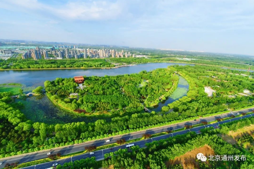 北京市臺辦官方微信公眾號「京彩臺灣」消息指出,國家森林城市創建以來,城市副中心深入貫徹「藍綠交織」建設理念,以大運河(京杭大運河)、溫榆河、運潮減河等水系作為藍色水網支撐,構建大尺度城市水綠空間格局。在上一輪百萬造林新增十九點三萬亩的基礎上,啟動實施《北京城市副中心園林綠化三年行動計畫》和新一輪百萬亩造林工程,實施造林廿一點六萬亩。