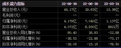 分单季度看,公司第三季度实现营业收入44.17亿元,同比增长90.4%,但同期净利润仅为4.18亿元,同比下滑26.52%,实现扣非净利润4.07亿元,同比下滑28.05%,连续三个季度下滑。