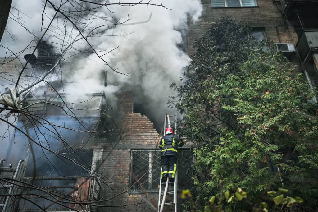 烏克蘭總統助手發布的一段基輔的視頻顯示,一棟顯然是住宅建築的五層樓著火。市長維塔利·克里琴科(Vitali Klitschko)說,三棟住宅樓被擊中,但防空部隊擊落了其他的導彈。