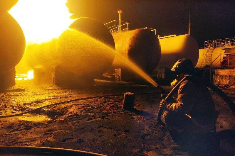 推特帳號「@bayraktar_1love」在推特PO出影片與照片,影片中遠方正在冒出濃烈的火舌,可以從照片中看到起火點是儲油槽與鐵路油罐車,消防隊員正在撲滅猛烈的火勢。