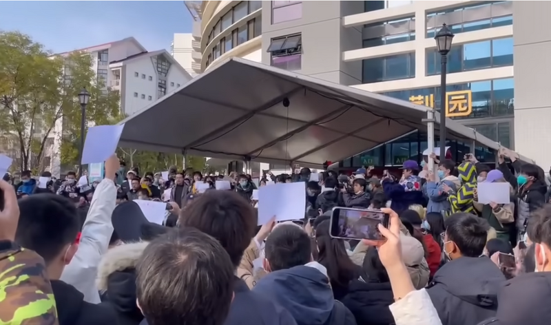 路透社報導,網路上流傳的圖像和影片顯示,南京和北京等城市的大學學生舉著白紙進行無聲抗議,這項策略部分是為了逃避審查或逮捕。