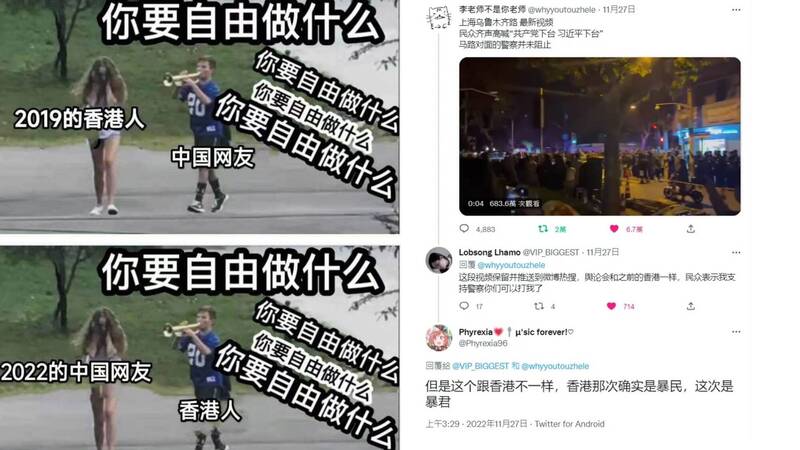 先前新疆烏魯木齊因當地政府堅持封控,而釀成10人不幸葬生火海的悲劇,也讓原先就非常不滿清零等防疫政策的中國民眾,紛紛集體湧上街頭示威抗議。