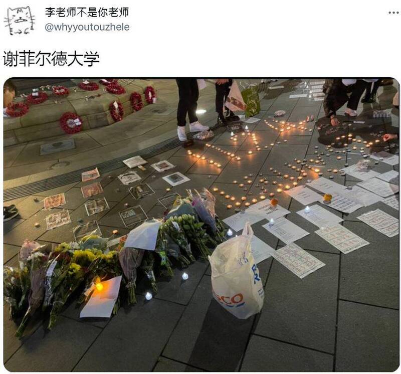 其他圖像顯示,隨後有其他數十人拿著白紙走上大學台階,他們用手機的手電筒照亮夜空。