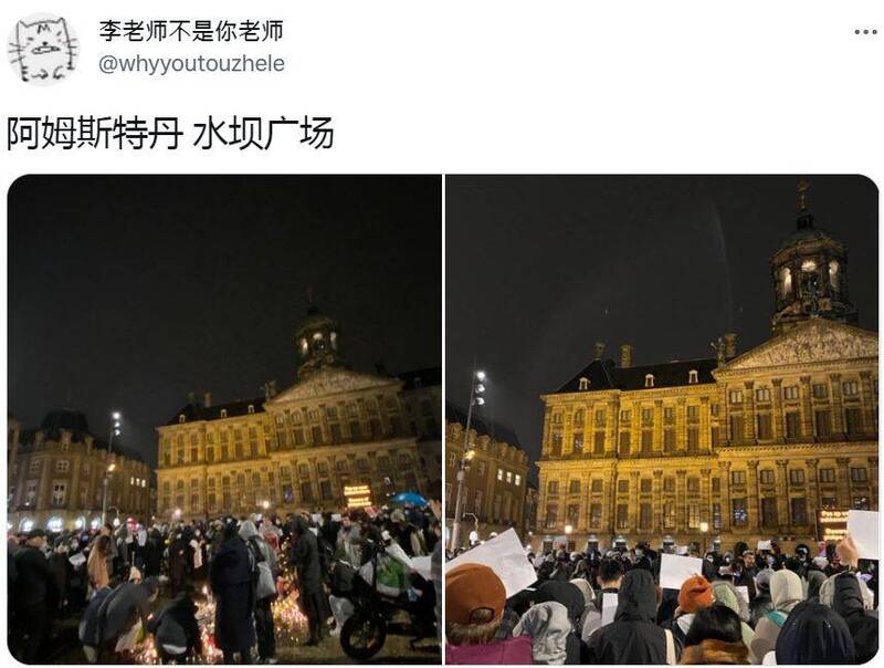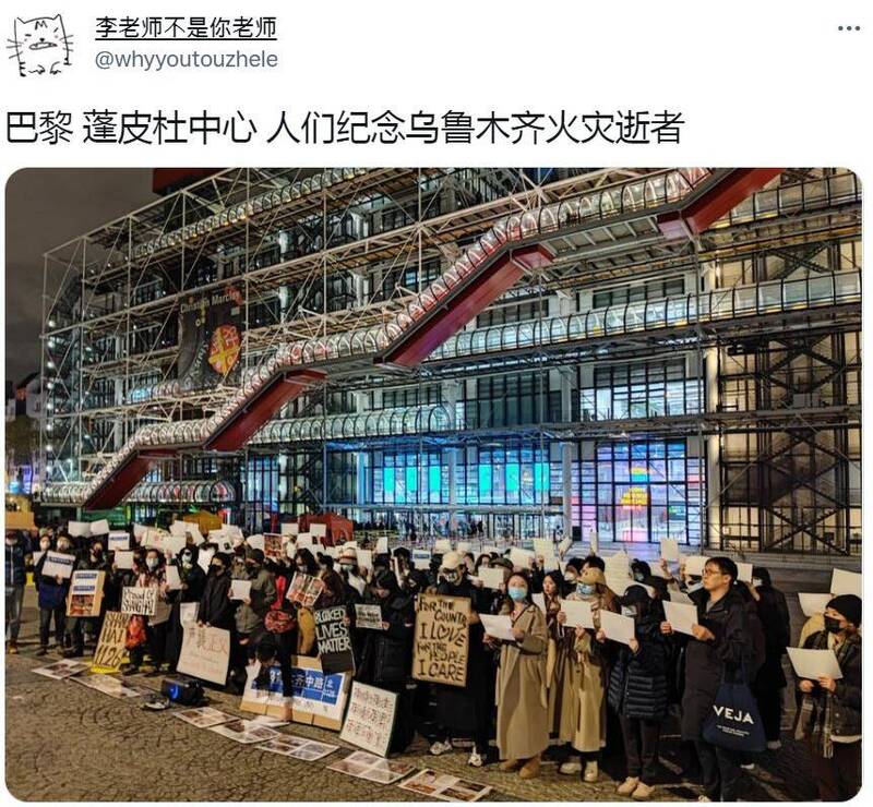 中國防疫封控造成河南鄭州富士康工廠大逃亡、新疆烏魯木齊公寓火災10死等慘烈事件,民眾在如此壓抑的情況下整整生活了2年多,因此一時間各地風起雲湧紛紛呼應「白紙革命」。與此同時,在英法荷等國外也陸續有民眾上街,聲援烏魯木齊及哀悼罹難者。