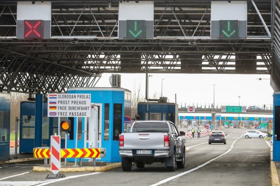 1月1日,车辆在克罗地亚与斯洛文尼亚边境的布雷加纳边防检查站通行无阻。新华社发(Pixsell图片社/卢卡·施坦茨尔摄)