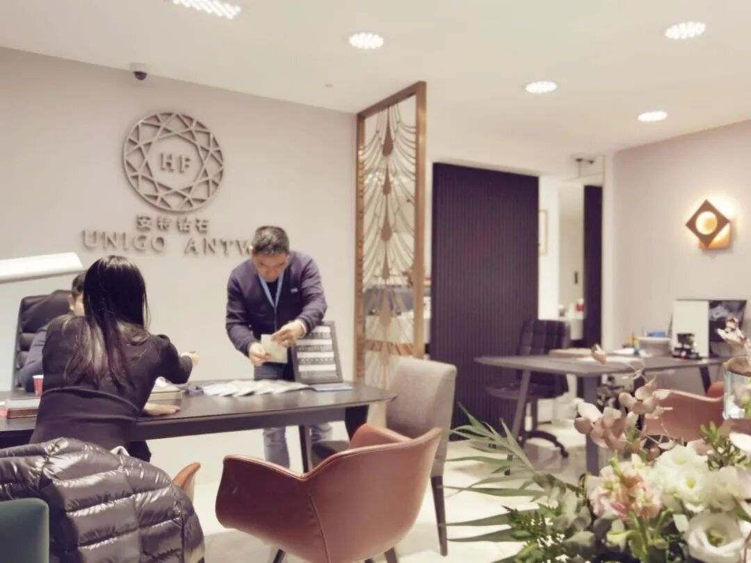 作为安特钻石交易中心为数不多的华人商家,安特钻石的店面低调中透露着奢华,每天迎来送往的行业人士,远道而来的客户络绎不绝。