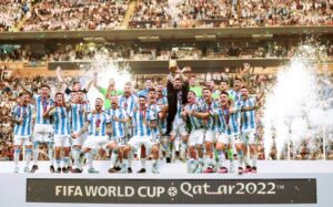 2022年12月18日,阿根廷队经过点球大战,总比分7:5战胜法国队夺得卡塔尔世界杯冠军。