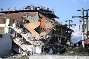 这是2月8日在土耳其哈塔伊拍摄的遭地震损毁的建筑。(新华社记者沙达提摄)