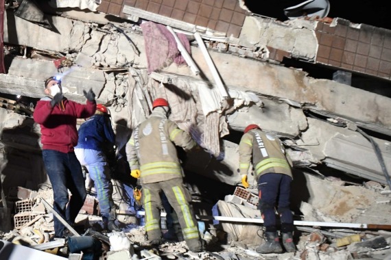 卡赫拉曼马拉什省是这次地震的重灾区。在首府卡赫拉曼马拉什市的一片废墟上,来自首都安卡拉某救援队的一条搜救犬,戴着小型定位背带,凭着灵敏的嗅觉,一刻不停地找寻被埋的幸存者。