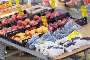 这是3月2日在德国柏林拍摄的一处水果摊。欧盟统计局2日公布的初步统计数据显示,欧元区2月通胀率按年率计算为8.5%,略低于1月的8.6%,降幅不及预期。新华社发(斯特凡·蔡茨摄)