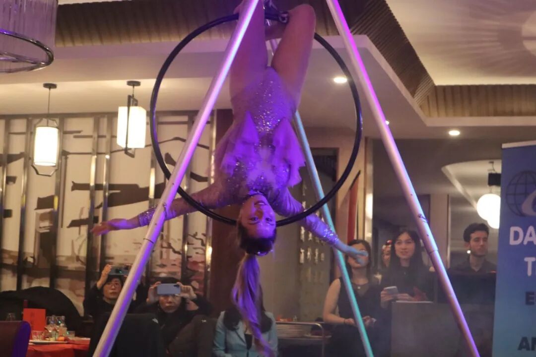 张鸣凤的吊环舞《圆圆满满》更是以表演者曼妙的舞姿将晚会带入了高潮。在勃拉姆斯三重奏的优雅旋律中,晚会表演结束。