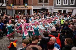 比利时斯塔沃洛狂欢节举办化妆彩车巡游