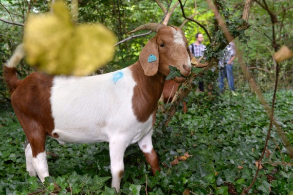 2013年8月7日,在美国首都华盛顿国会公墓,生态山羊在吃草。新华社记者张军摄