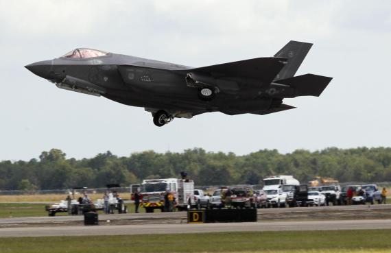 2019年10月19日,在美国休斯敦航空展上,美军F-35战斗机进行飞行表演。新华社发 (宋穹摄)