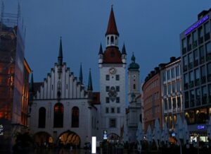 这是2022年7月30日晚拍摄的德国慕尼黑老市政厅。为应对能源紧张,德国多地采取措施节约用电。新华社发(菲利普·鲁伊兹摄)