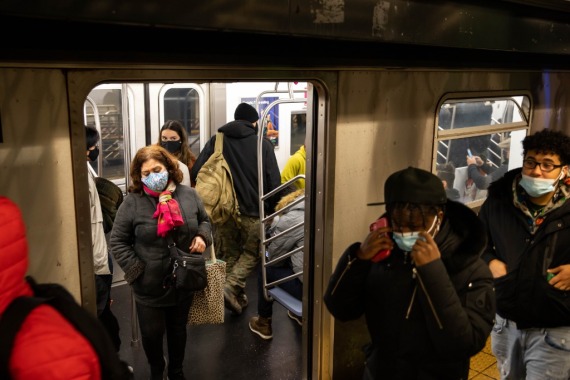 2020年12月12日,人们在美国纽约乘坐地铁。新华社发(郭克摄)