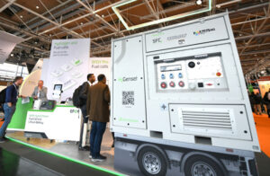 西班牙伊维尔德罗拉电力公司通过模型展示了其建造的工业用大型绿氢生产厂。该厂年产绿氢3000吨,所产绿氢主要用于生产环保化肥。该公司还展示了其在西班牙建立的一座为绿氢巴士提供能源的工厂,首批8辆绿氢巴士也于去年投入运营。