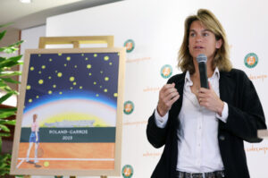 4月21日,法网赛事总监、法国前女子网球名将毛瑞斯莫出席在法国巴黎罗兰加洛斯体育场举行的赛前新闻发布会。新华社记者 高静 摄