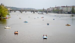 这是2020年4月18日在捷克布拉格伏尔塔瓦河上的游船。新华社发(达娜·科什奈洛娃摄)